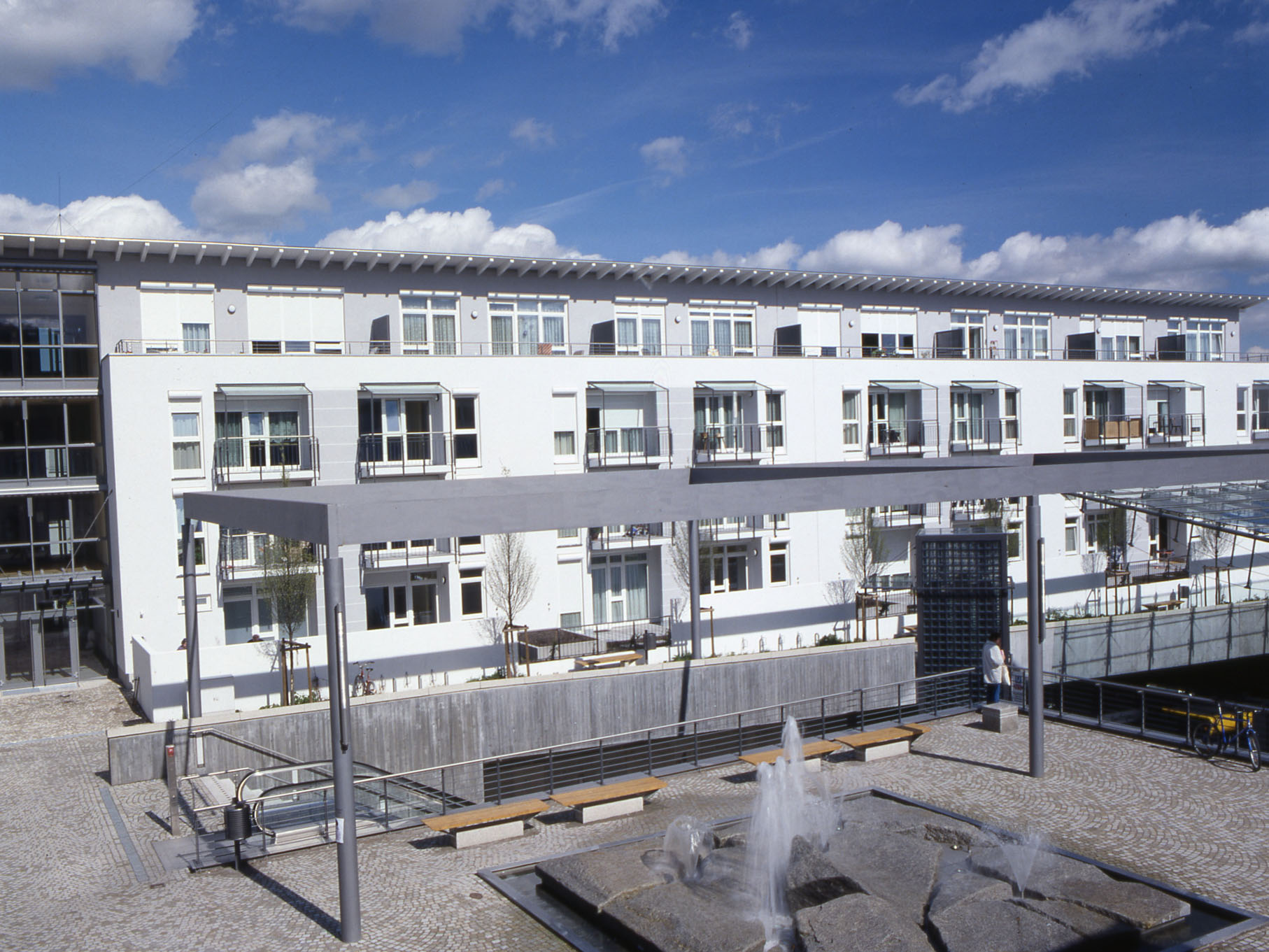 Die Seniorenwohnanlage im Herzen Gerlingens bildet zusammen mit der Stadtbahnendhaltestelle, der Stadtbücherei und der Volkshochschule städtebaulich ein gelungenes Ensemble.